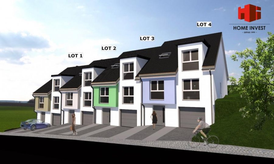 Belle maison en bande (Lot 2 ) de +/- 161 m2 (Ecopass: BB) sur un terrain de +/- 2,34 ares prochainement en construction comprenant au:Rdch: hall d'acceuil, buanderie, chaufferie, garage pour 2 voitures, emplacement extérieur devant la demeure;