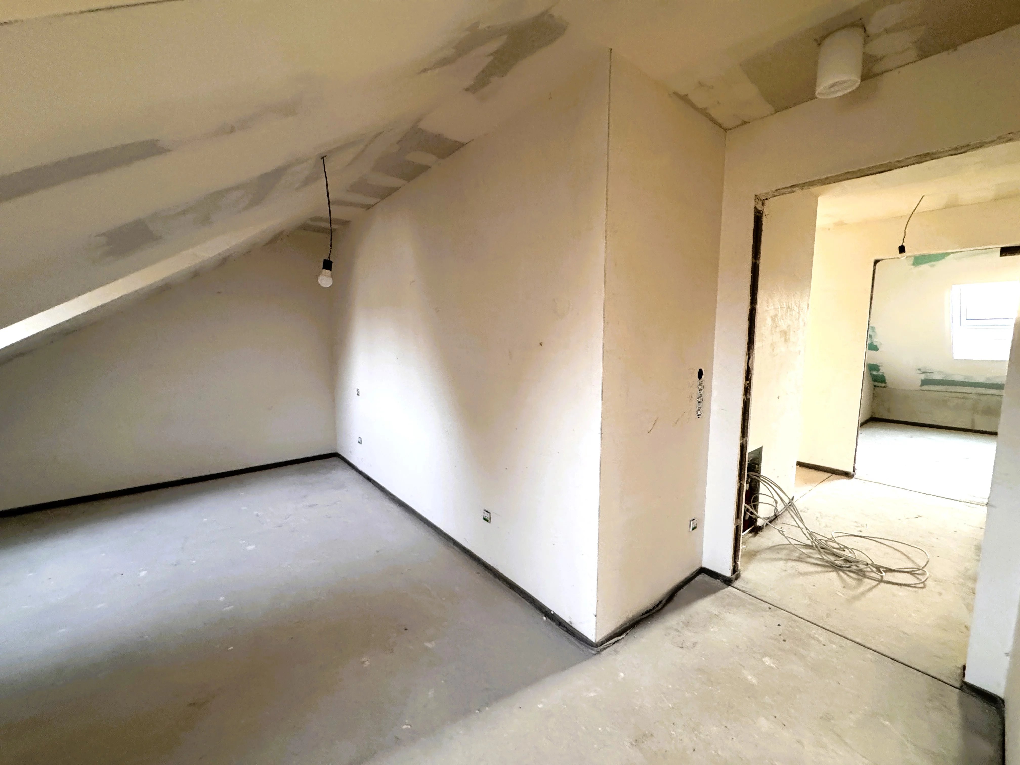 - une 2ième chambre à coucher mansardée d’une superficie de 11,36 m2