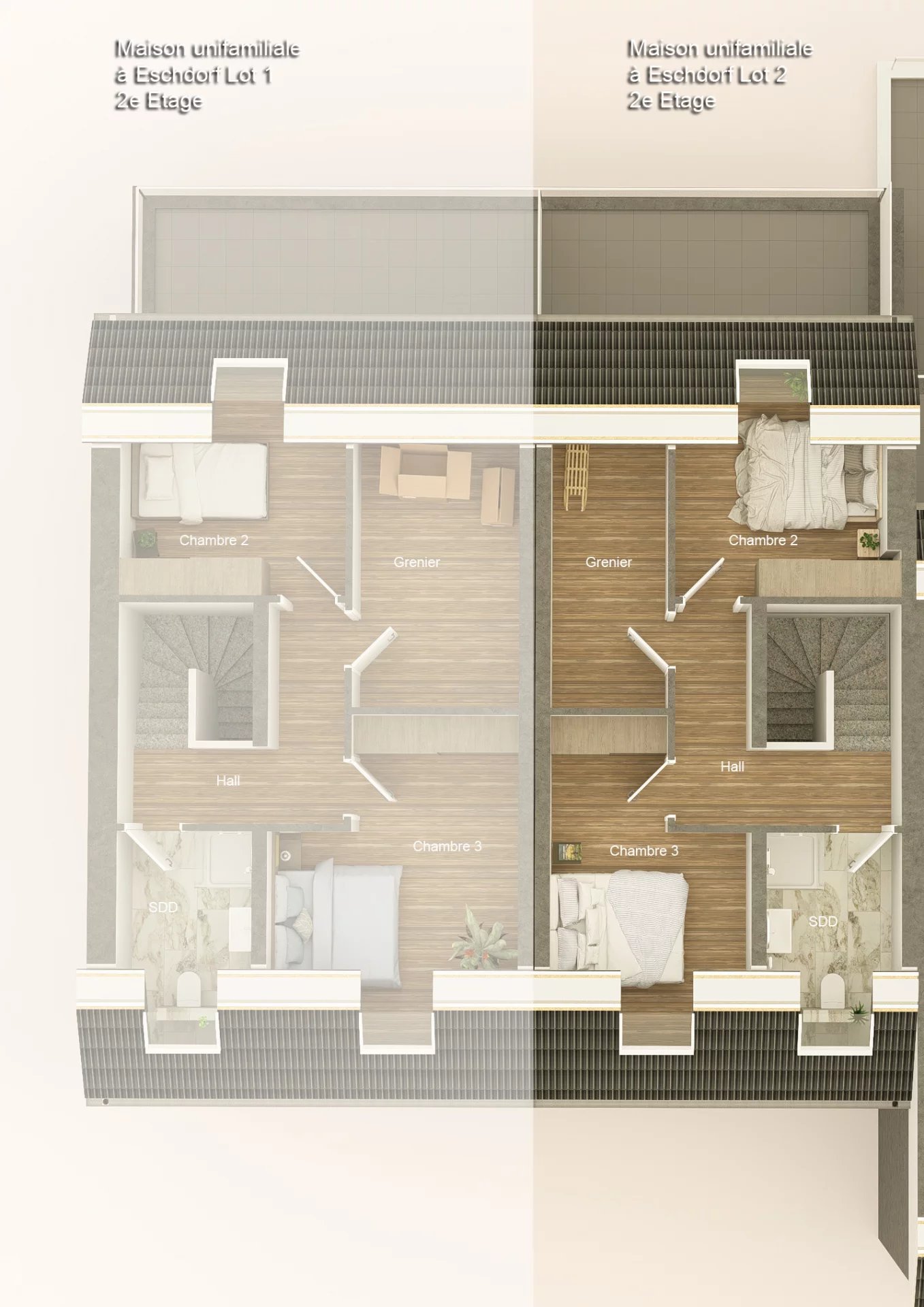 L’agence IMMOBILIERE MARECHAL vous propose en exclusivité une maison mitoyenne (lot 2), d’une surface habitable de +/-128 m2 (surface totale : +/- 204 m2) sur un terrain de 1 a 85 ca, établie sur 3 niveaux, à savoir :